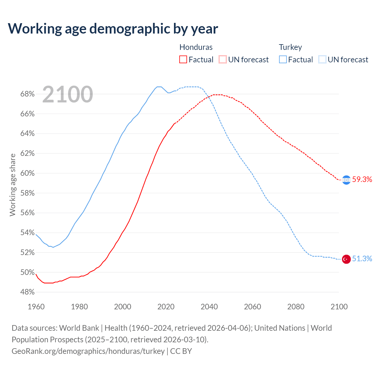 - Honduras has 7.3M working age adults (aged 15-64) vs 58.7M in Turkey.
