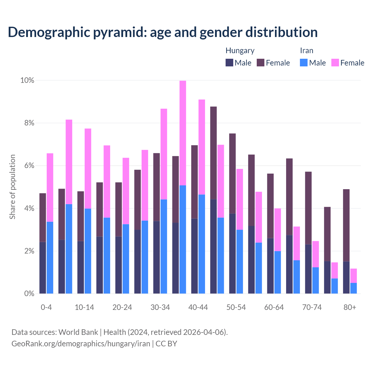 Demographics of Hungary compared to Iran: