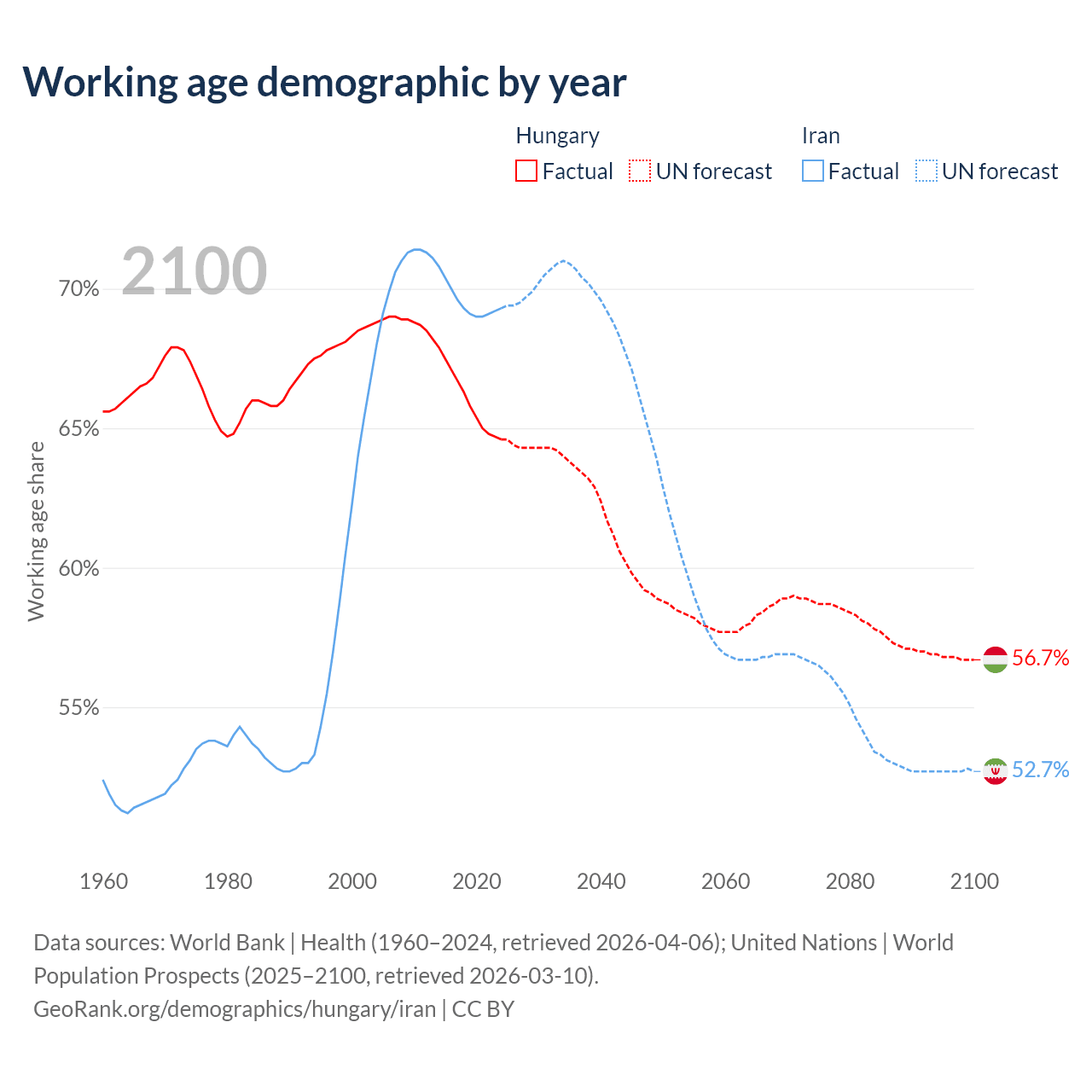 - Hungary has 6.12M working age adults (aged 15-64) vs 64.8M in Iran.