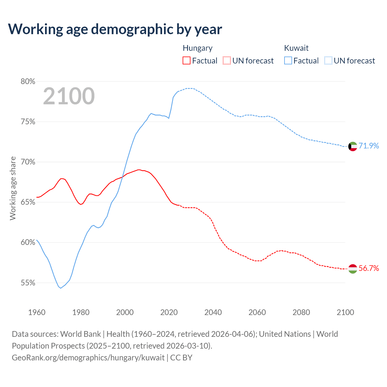 - Hungary has 6.12M working age adults (aged 15-64) vs 4.01M in Kuwait.