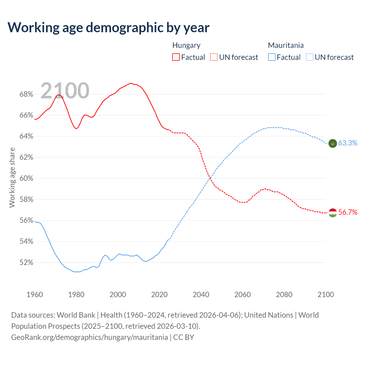 - Hungary has 6.12M working age adults (aged 15-64) vs 2.98M in Mauritania.