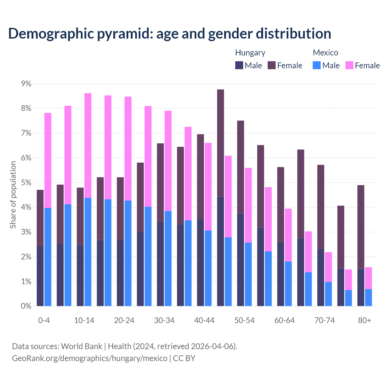 Demographics of Hungary compared to Mexico: