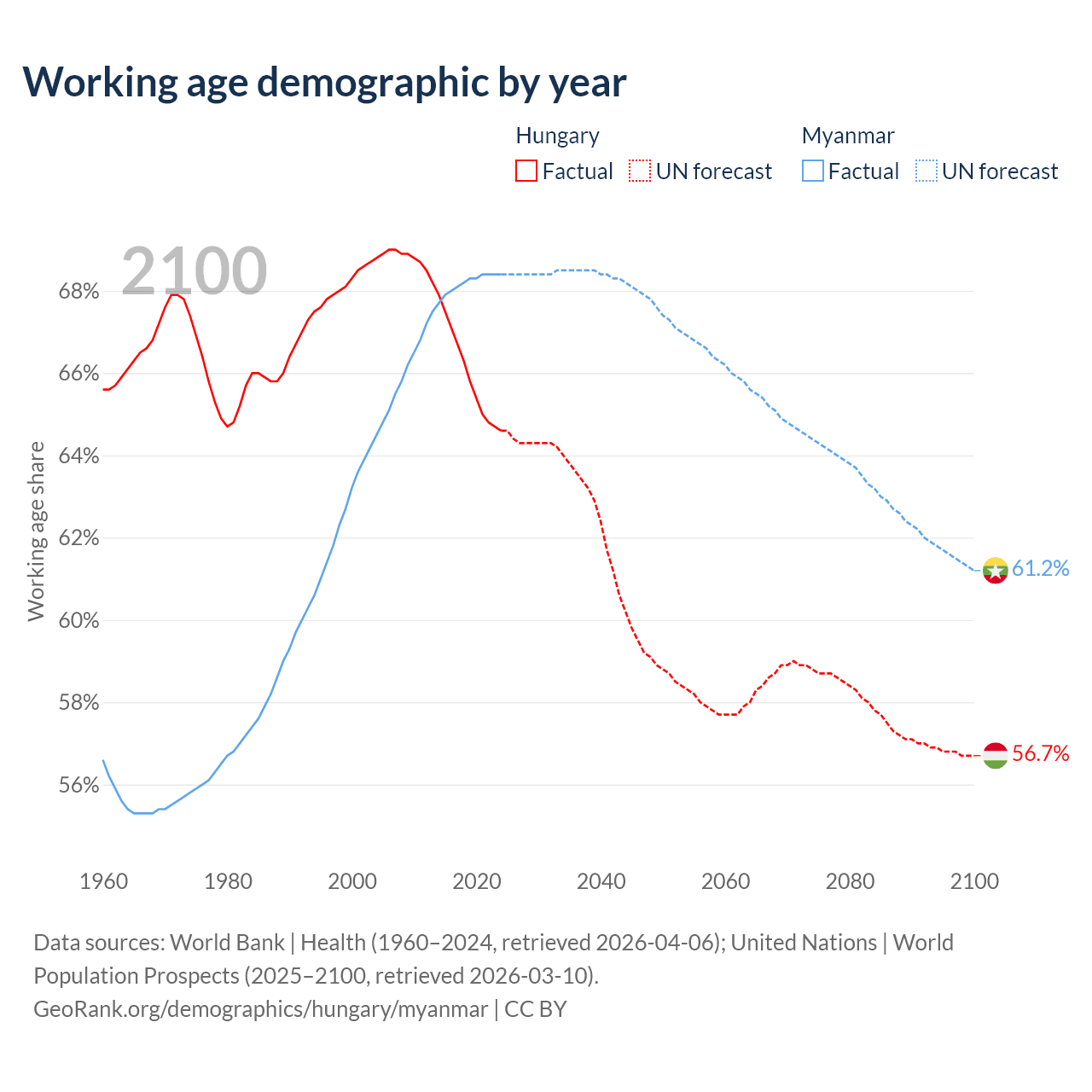 - Hungary has 6.12M working age adults (aged 15-64) vs 37.8M in Myanmar.