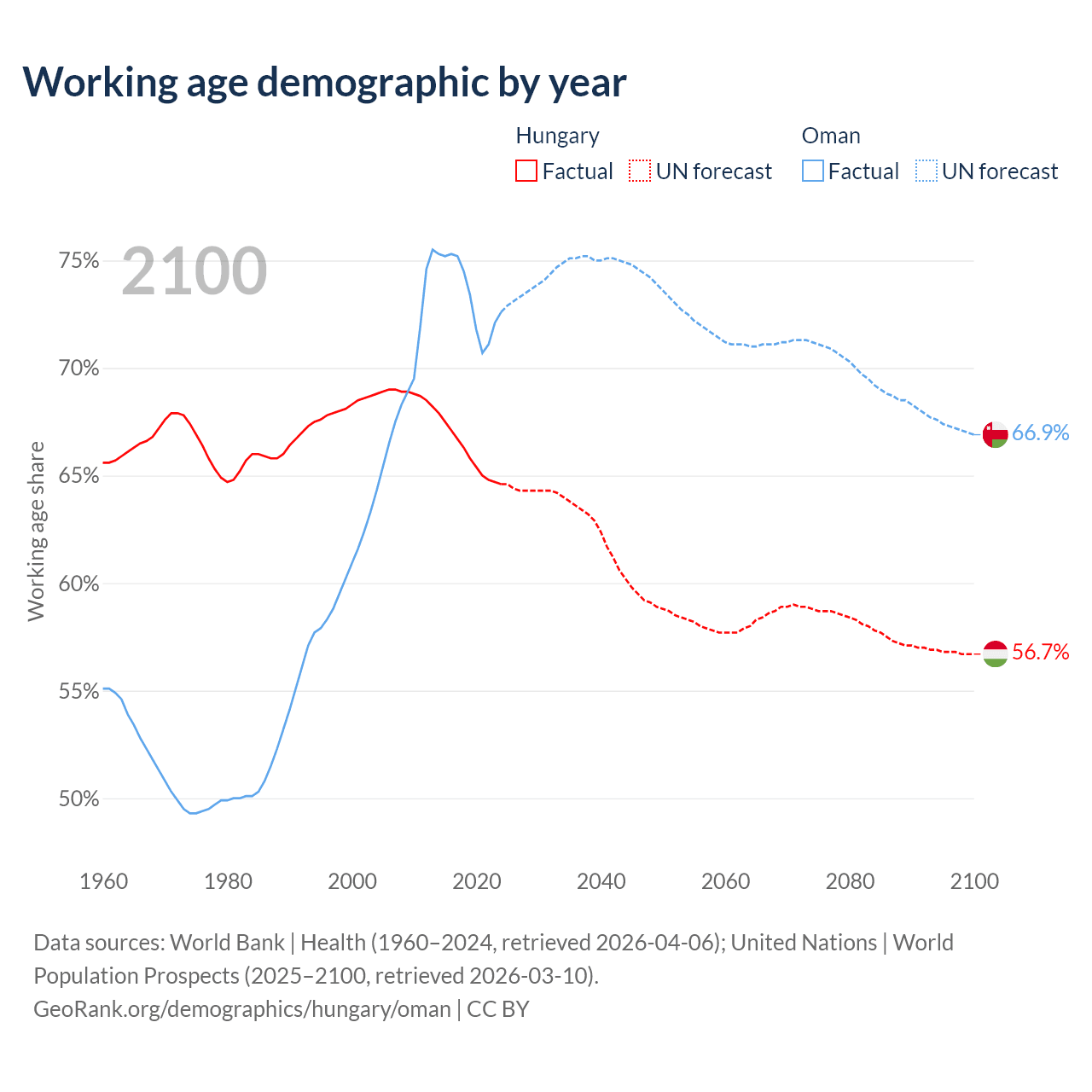 - Hungary has 6.12M working age adults (aged 15-64) vs 4.19M in Oman.