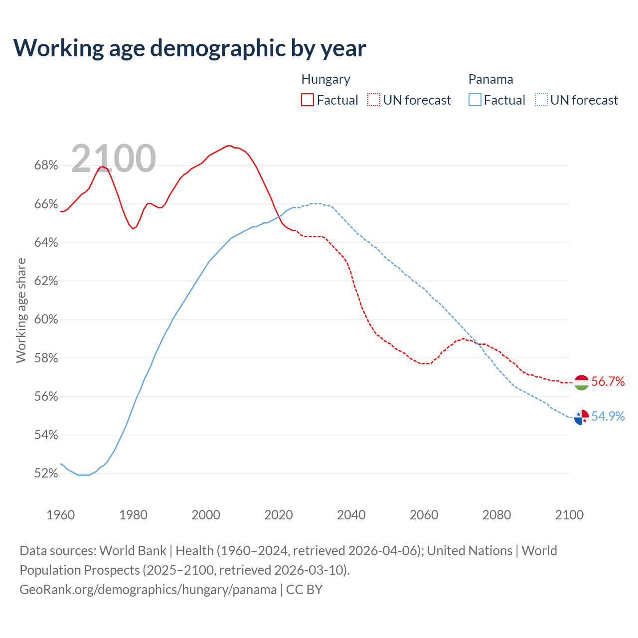 - Hungary has 6.12M working age adults (aged 15-64) vs 3.05M in Panama.