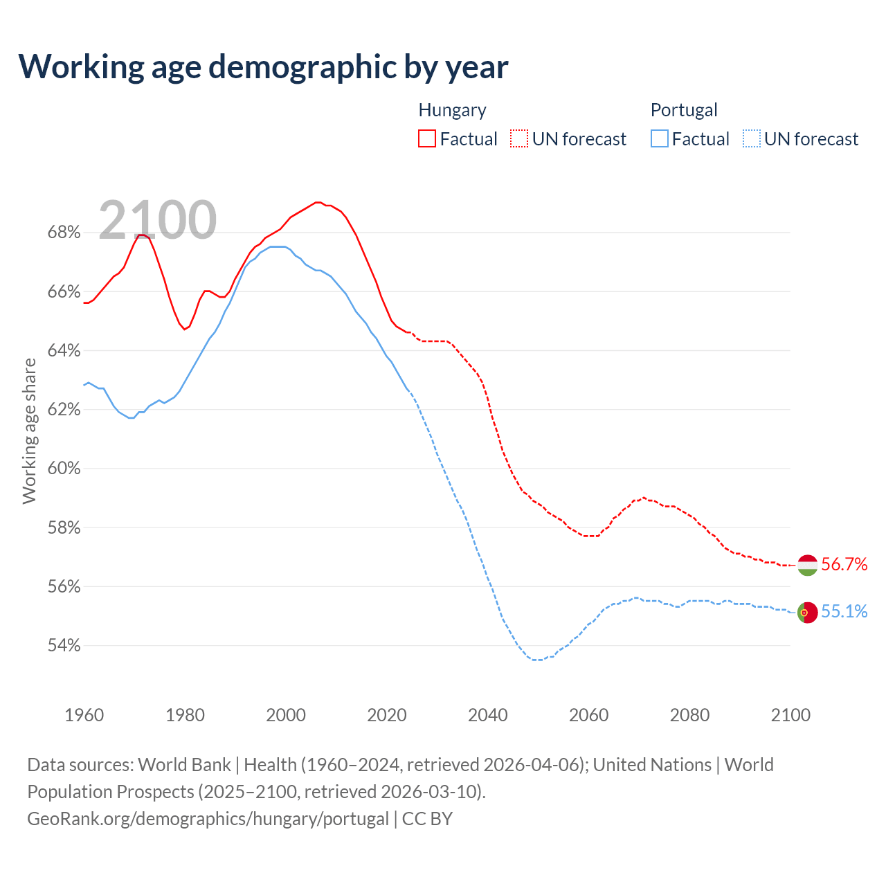 - Hungary has 6.12M working age adults (aged 15-64) vs 6.68M in Portugal.