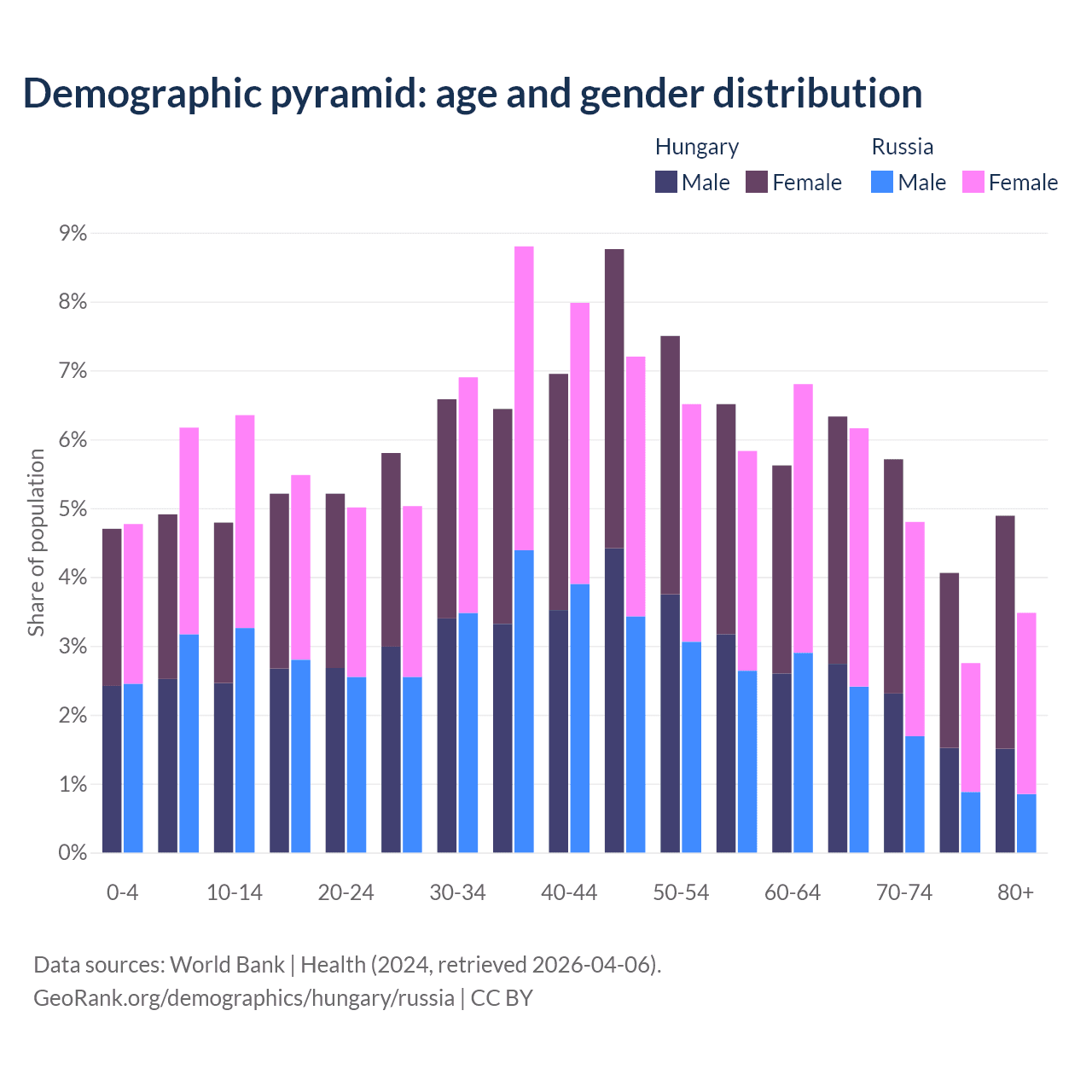 Demographics of Hungary compared to Russia: