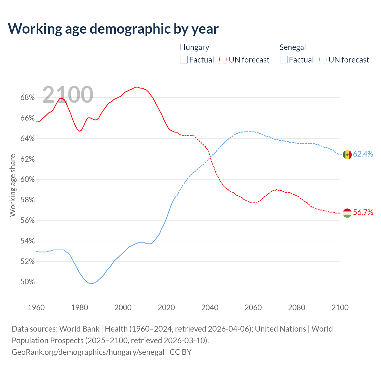 - Hungary has 6.12M working age adults (aged 15-64) vs 11.3M in Senegal.