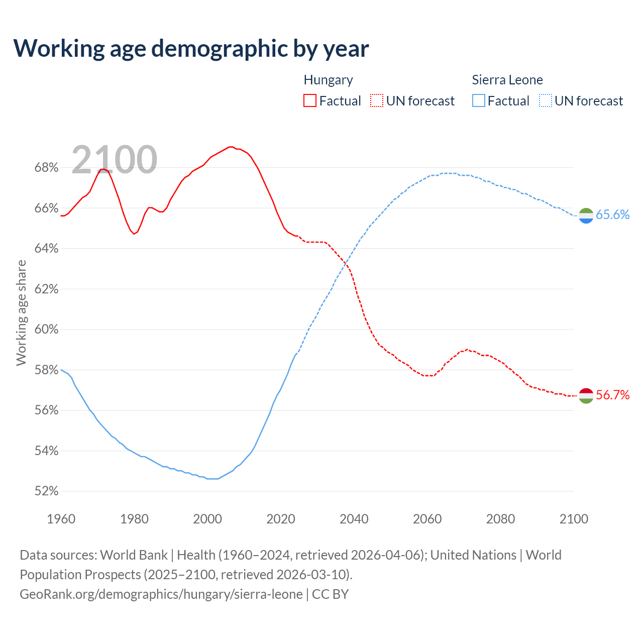 - Hungary has 6.12M working age adults (aged 15-64) vs 5.31M in Sierra Leone.