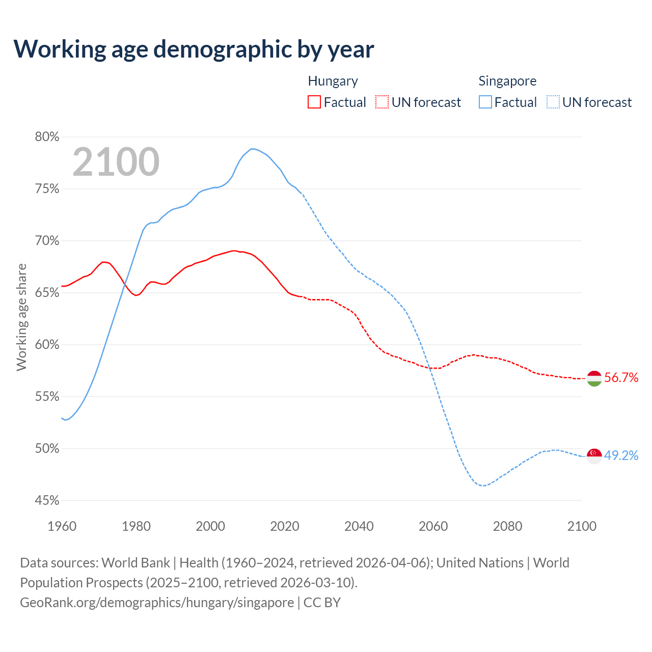 - Hungary has 6.12M working age adults (aged 15-64) vs 4.57M in Singapore.