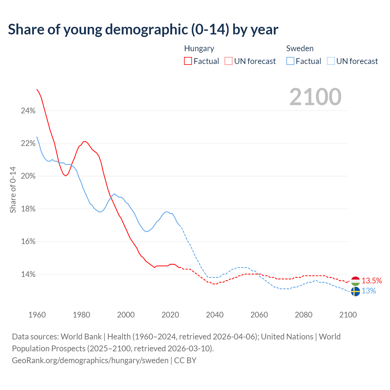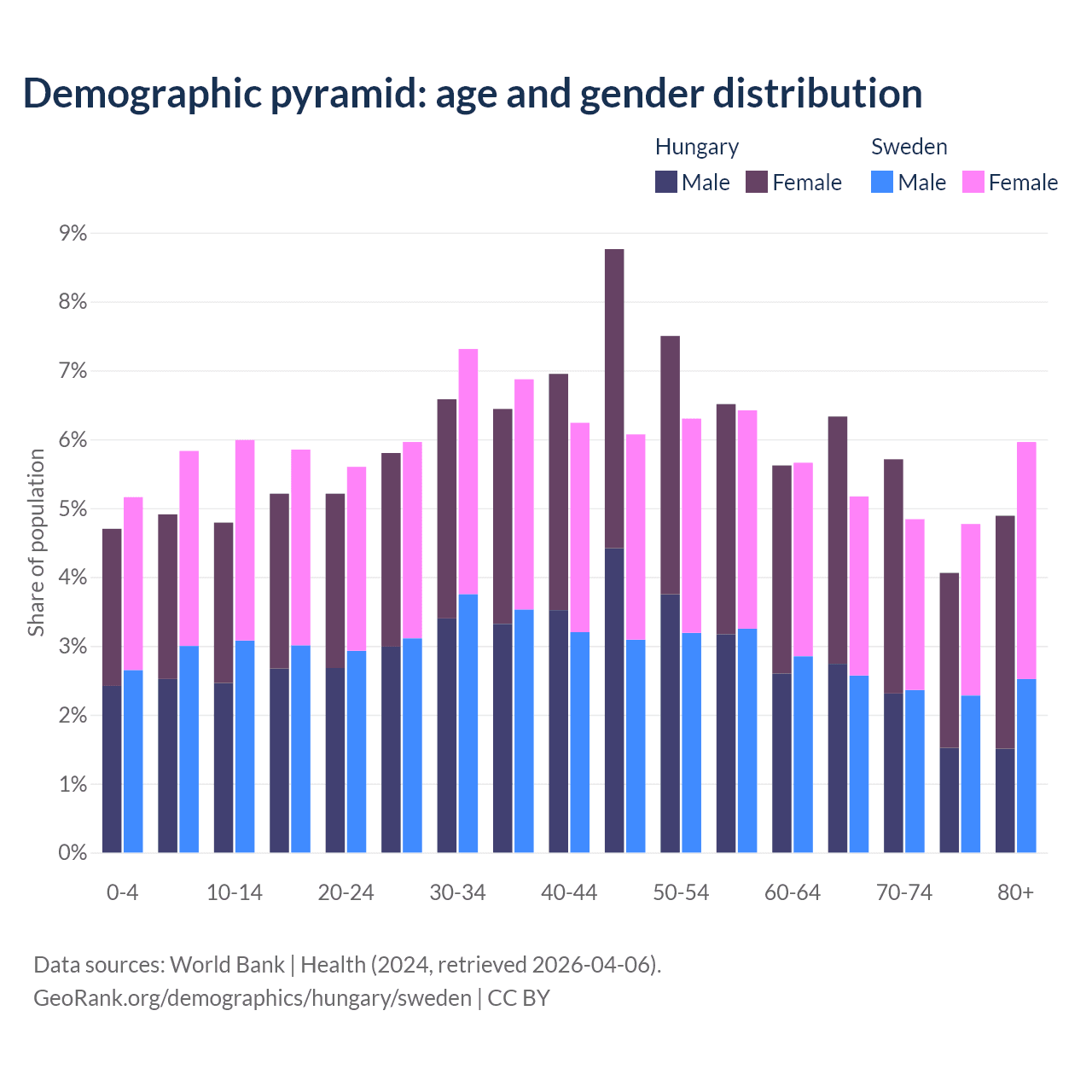 - As of 2026, the population of Hungary is 9.48M vs 10.7M in Sweden.