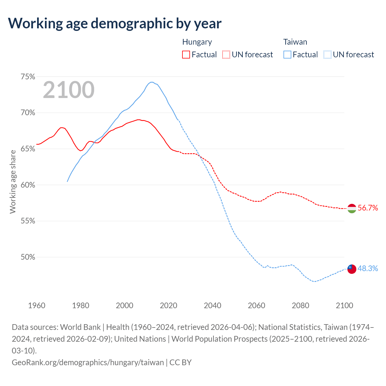 - Hungary has 6.12M working age adults (aged 15-64) vs 16.1M in Taiwan.