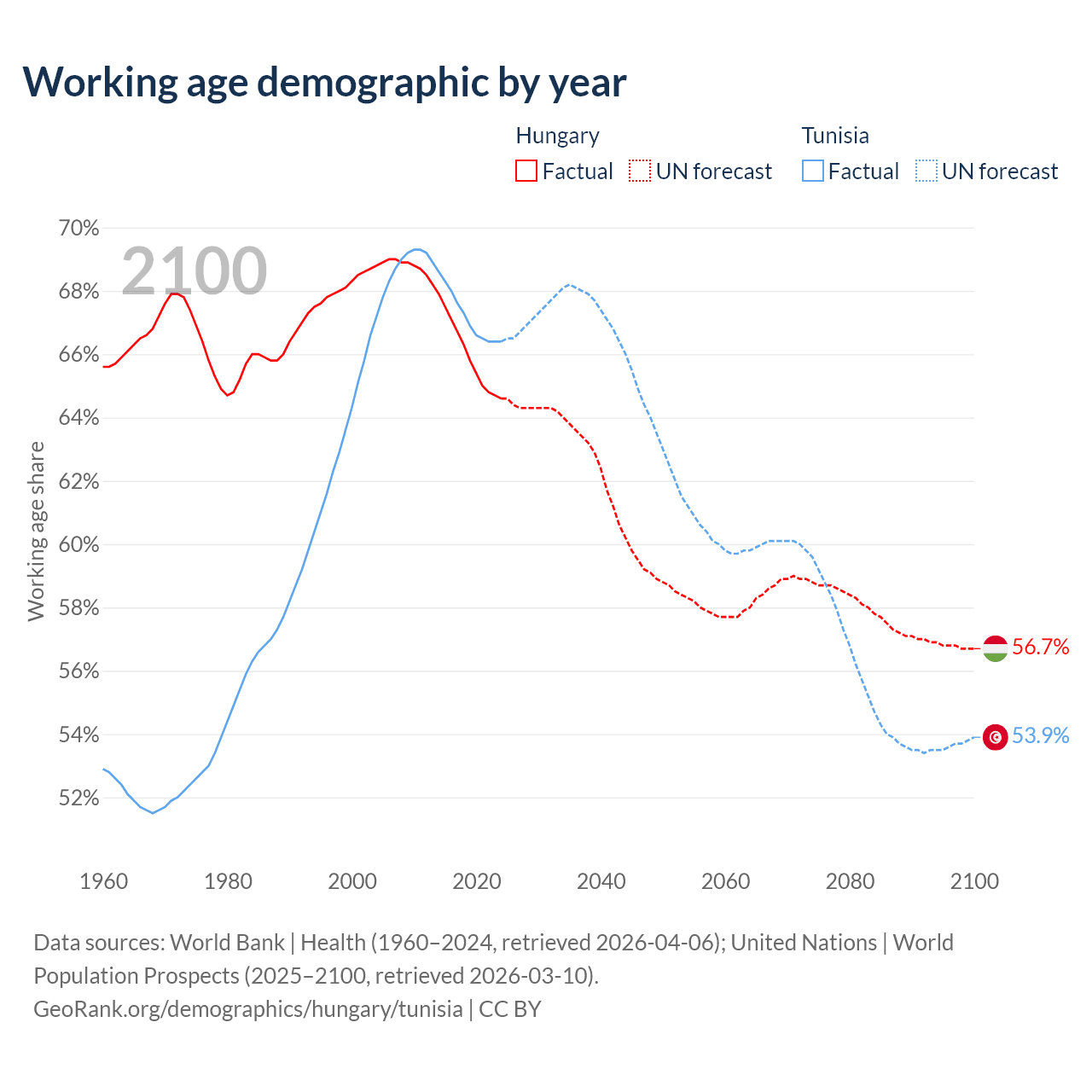 - Hungary has 6.12M working age adults (aged 15-64) vs 8.26M in Tunisia.