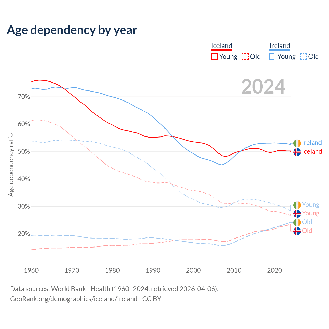 - The share of young demographic (0-15 years old) in Iceland is 17.8% vs 18.6% in Ireland.