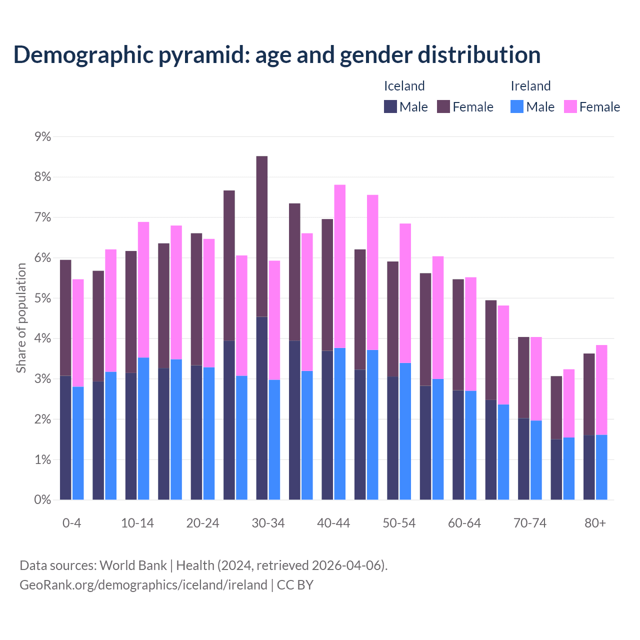 Demographics of Iceland compared to Ireland: