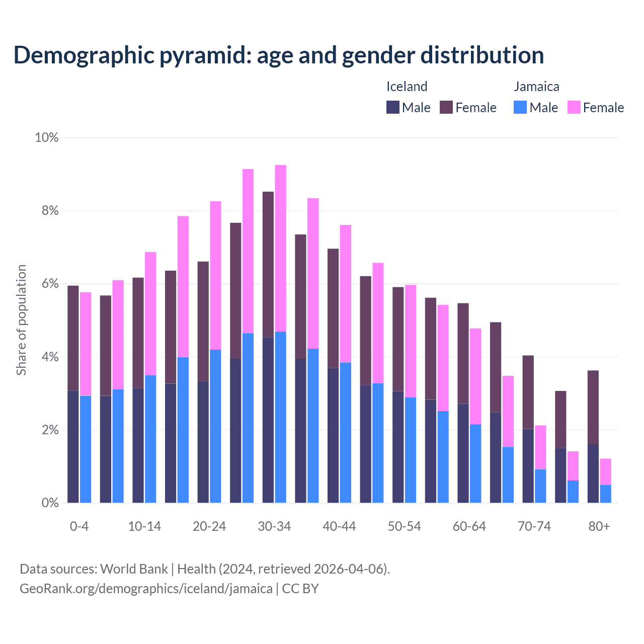 Demographics of Iceland compared to Jamaica: