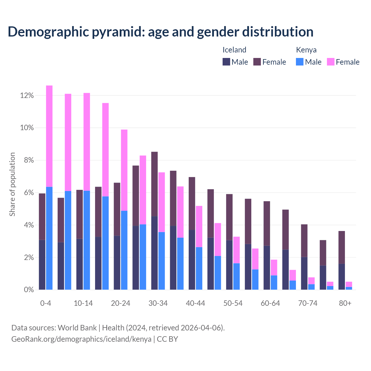 Demographics of Iceland compared to Kenya:
