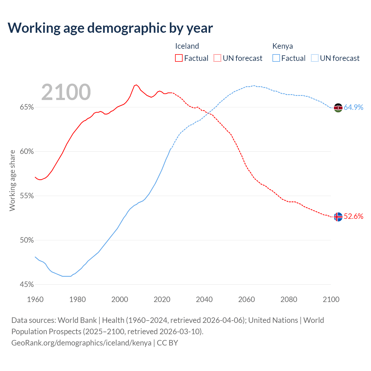 - Iceland has 264K working age adults (aged 15-64) vs 35.5M in Kenya.