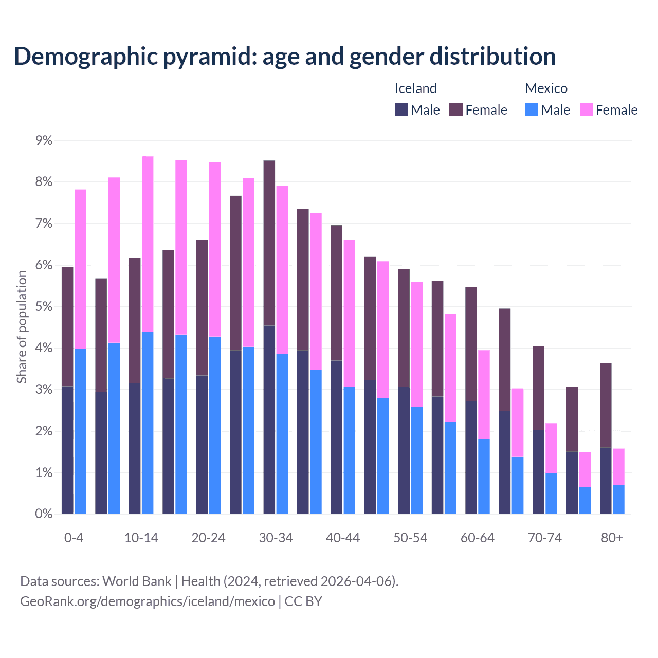 Demographics of Iceland compared to Mexico: