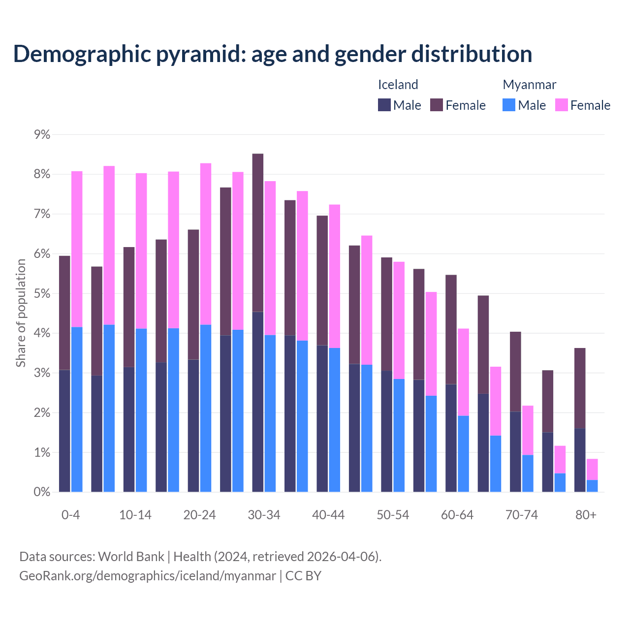 Demographics of Iceland compared to Myanmar: