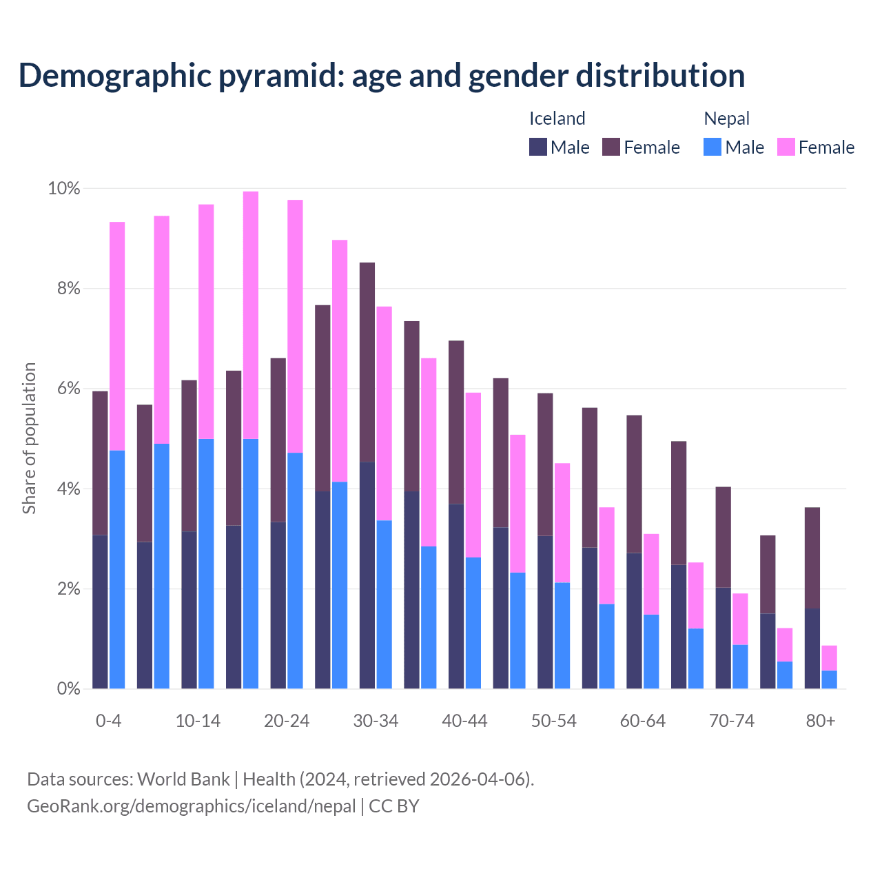 Demographics of Iceland compared to Nepal: