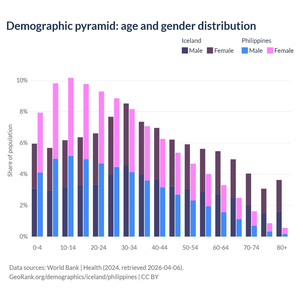 Demographics of Iceland compared to the Philippines:
