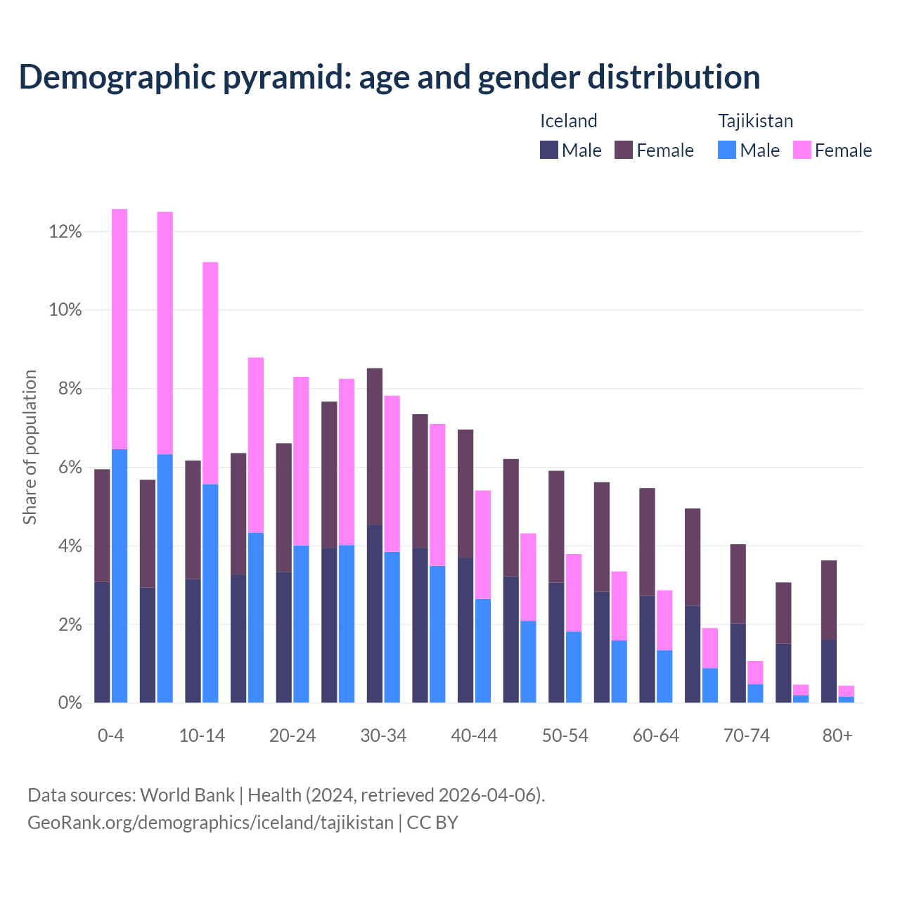 Demographics of Iceland compared to Tajikistan: