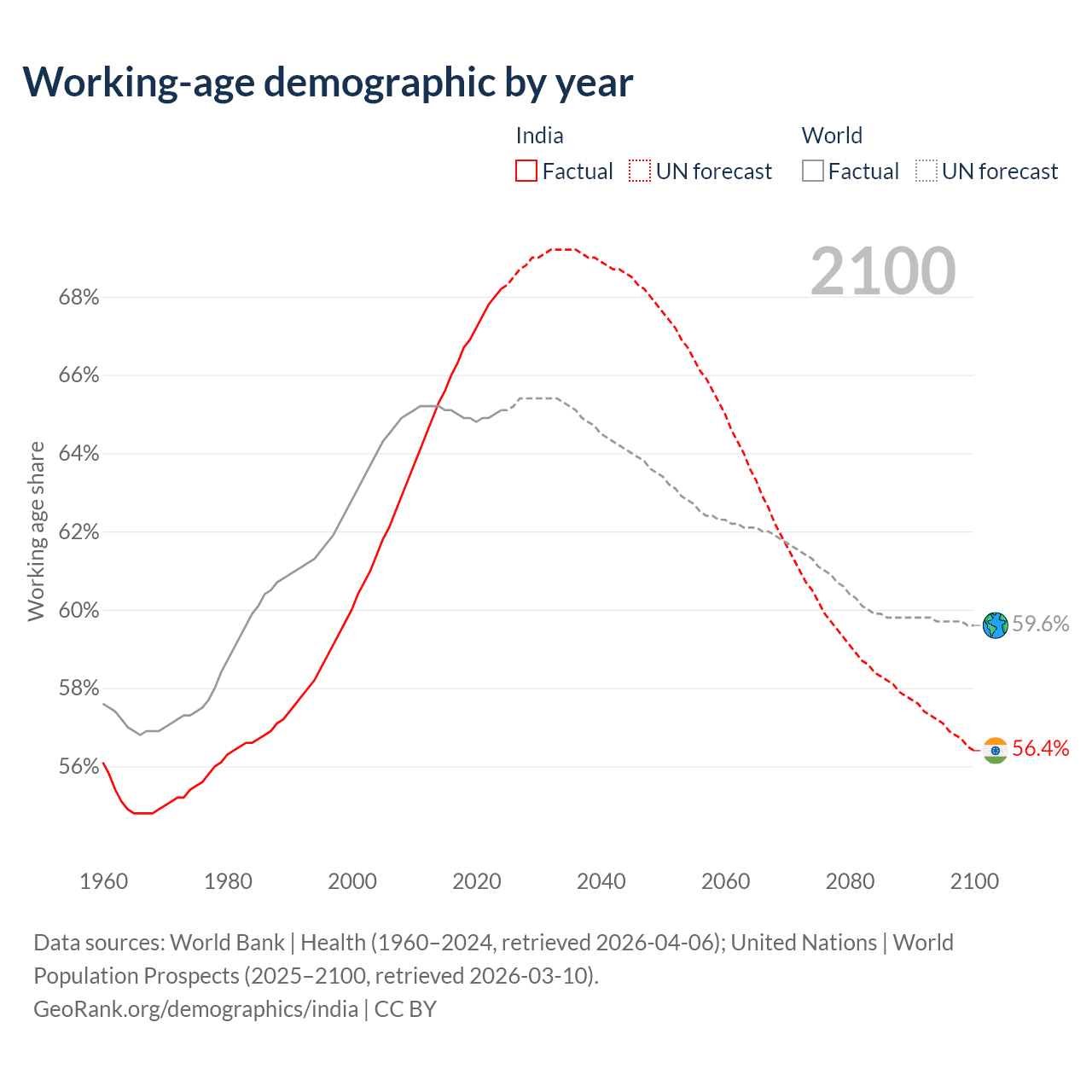 - United Nations | World Population Prospects (1950–2100, retrieved 2026-03-10)