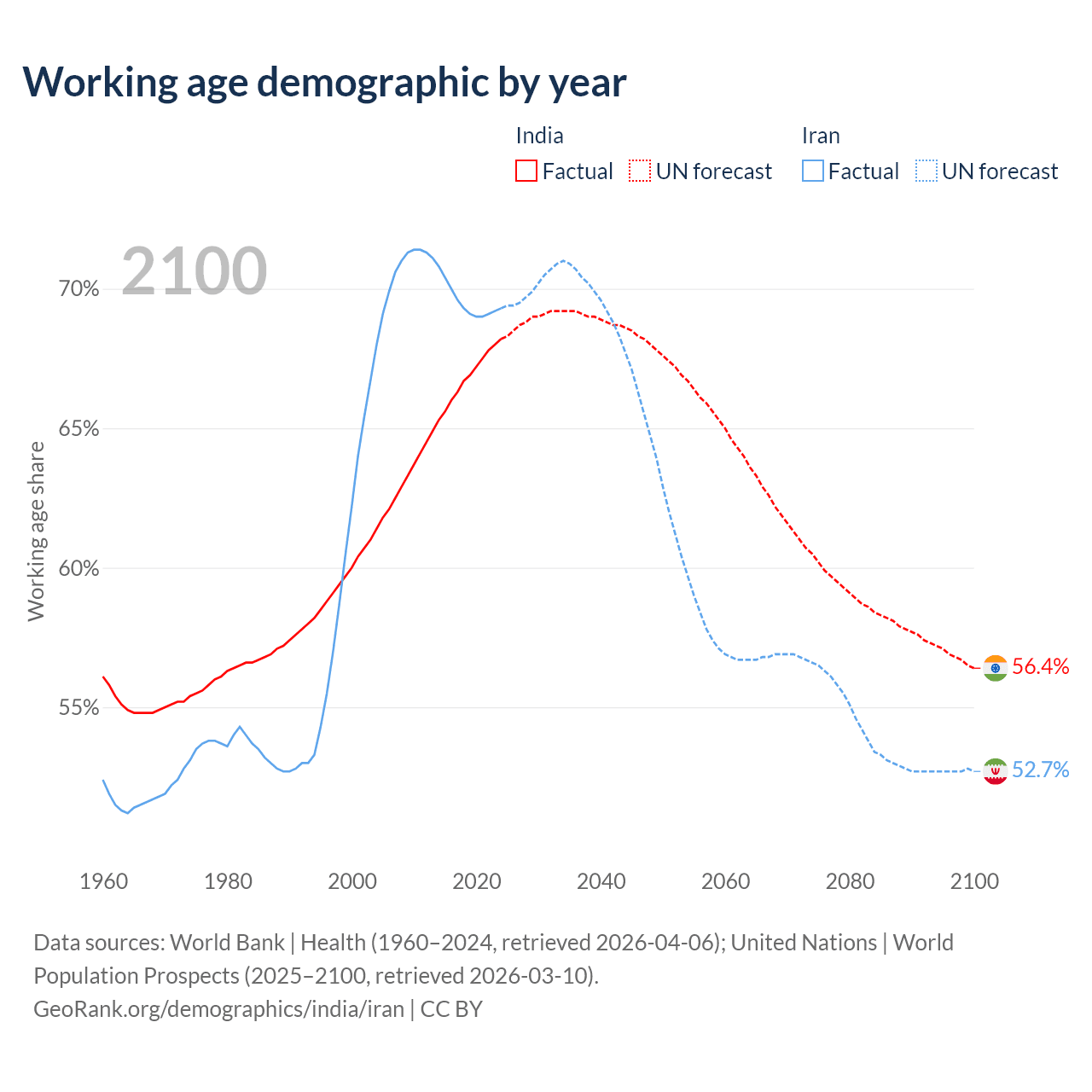 - India has 1.01B working age adults (aged 15-64) vs 64.8M in Iran.