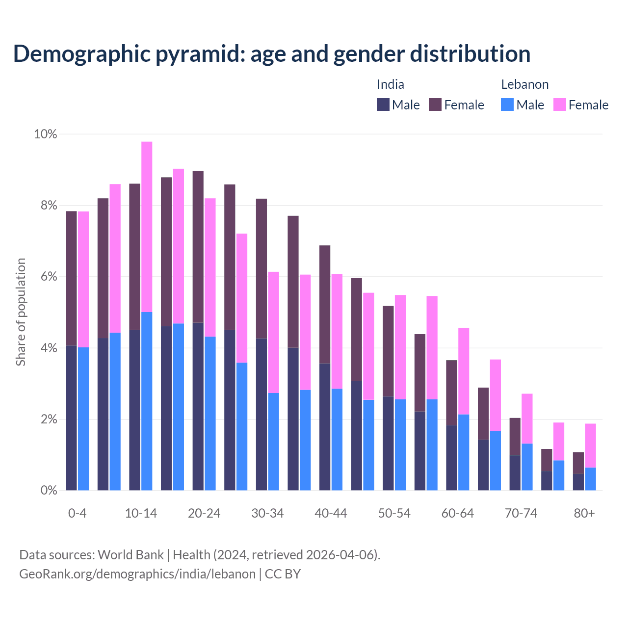 Demographics of India compared to Lebanon: