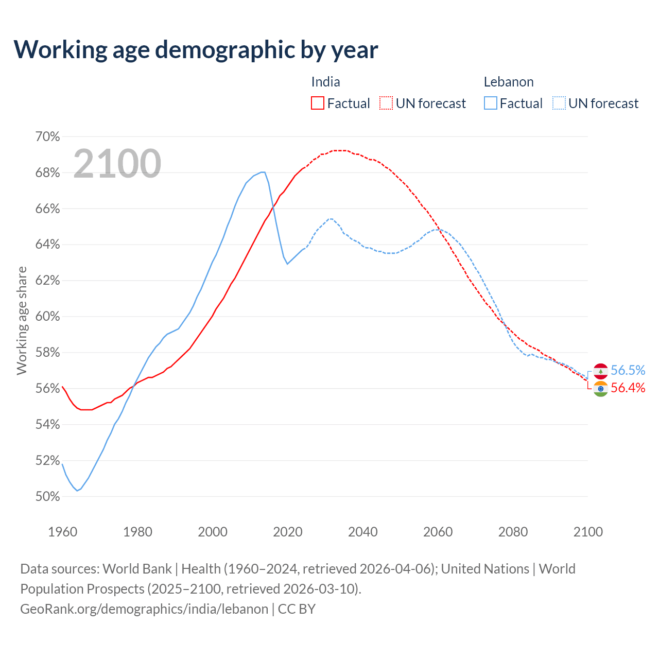 - India has 1.01B working age adults (aged 15-64) vs 3.76M in Lebanon.