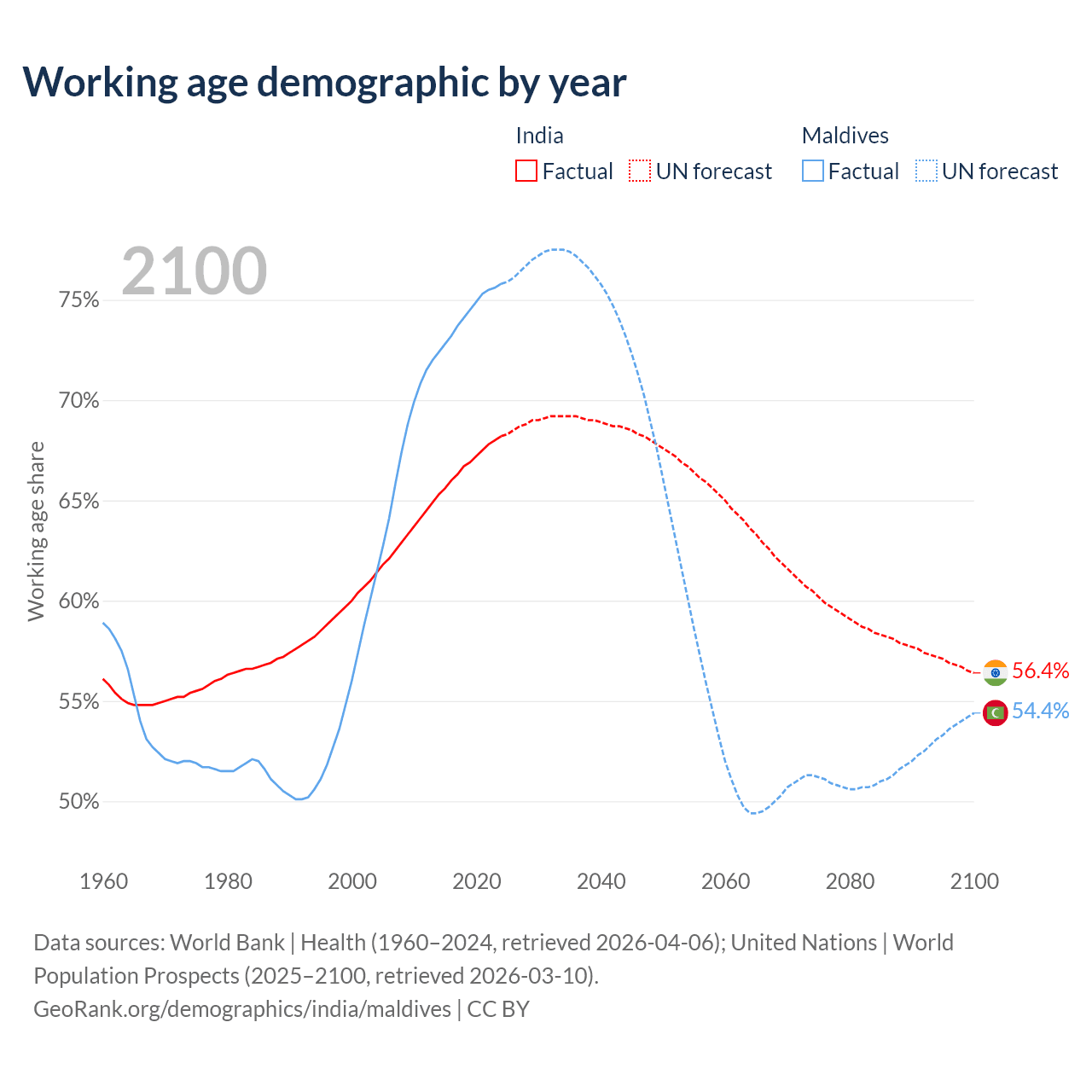 - India has 1.01B working age adults (aged 15-64) vs 403K in Maldives.