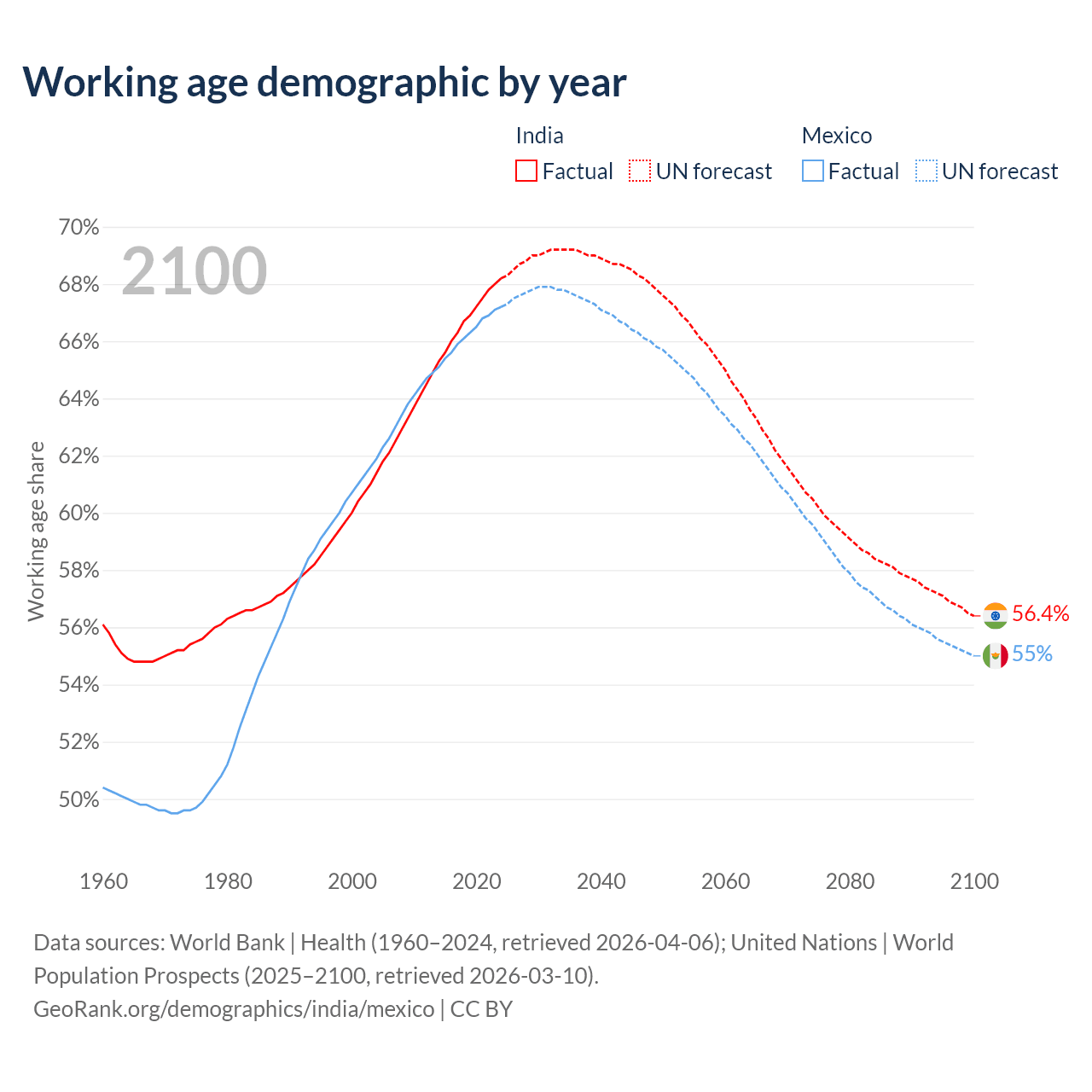 - India has 1.01B working age adults (aged 15-64) vs 89.6M in Mexico.