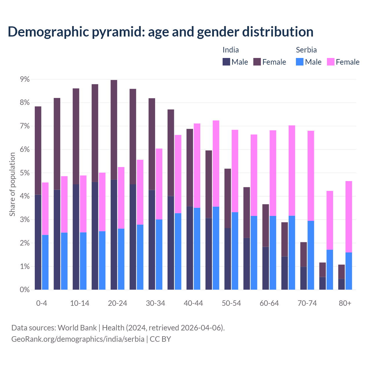 Demographics of India compared to Serbia: