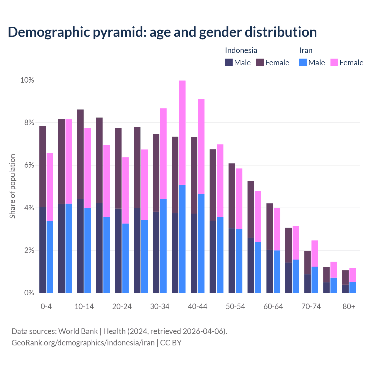 Demographics of Indonesia compared to Iran: