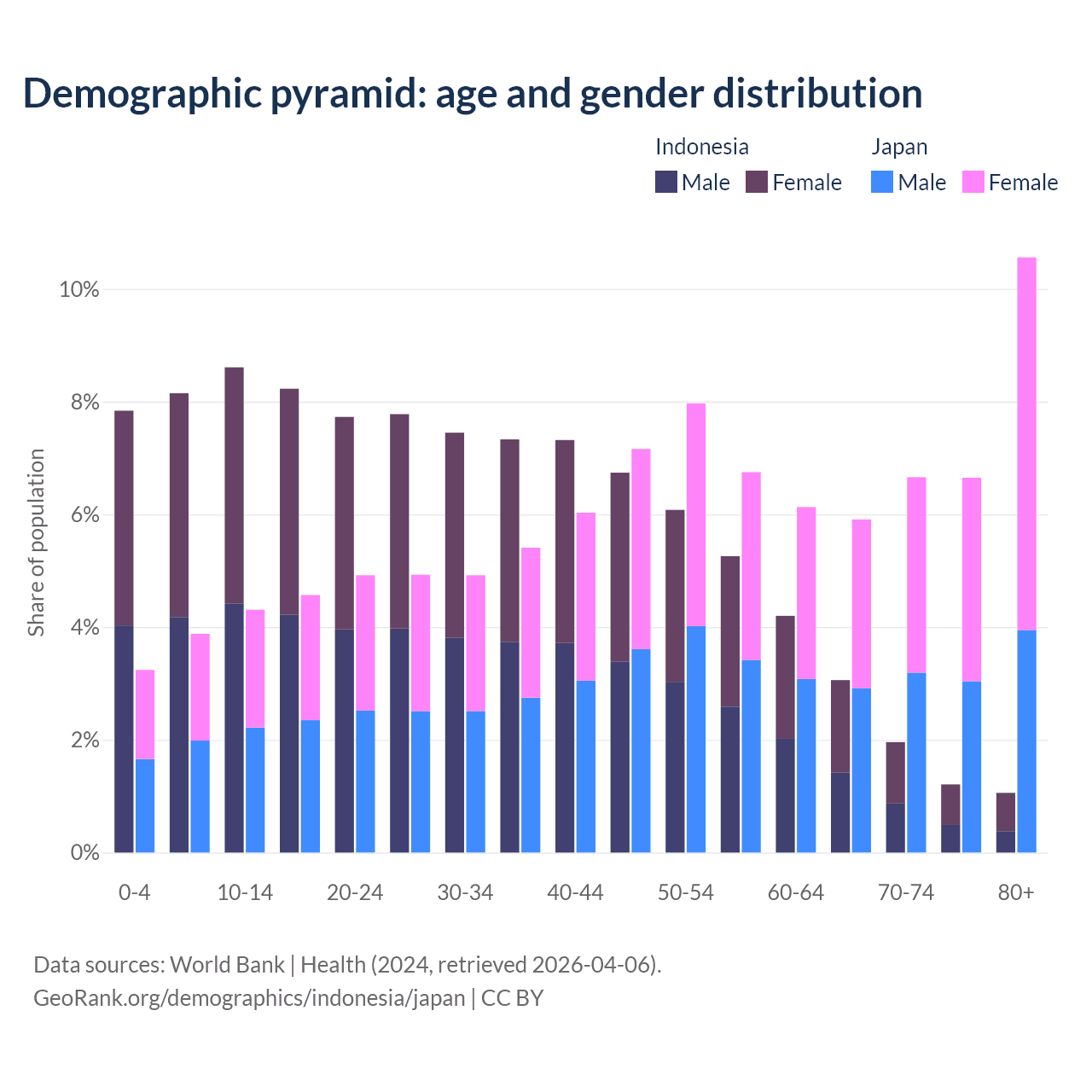 Demographics of Indonesia compared to Japan: