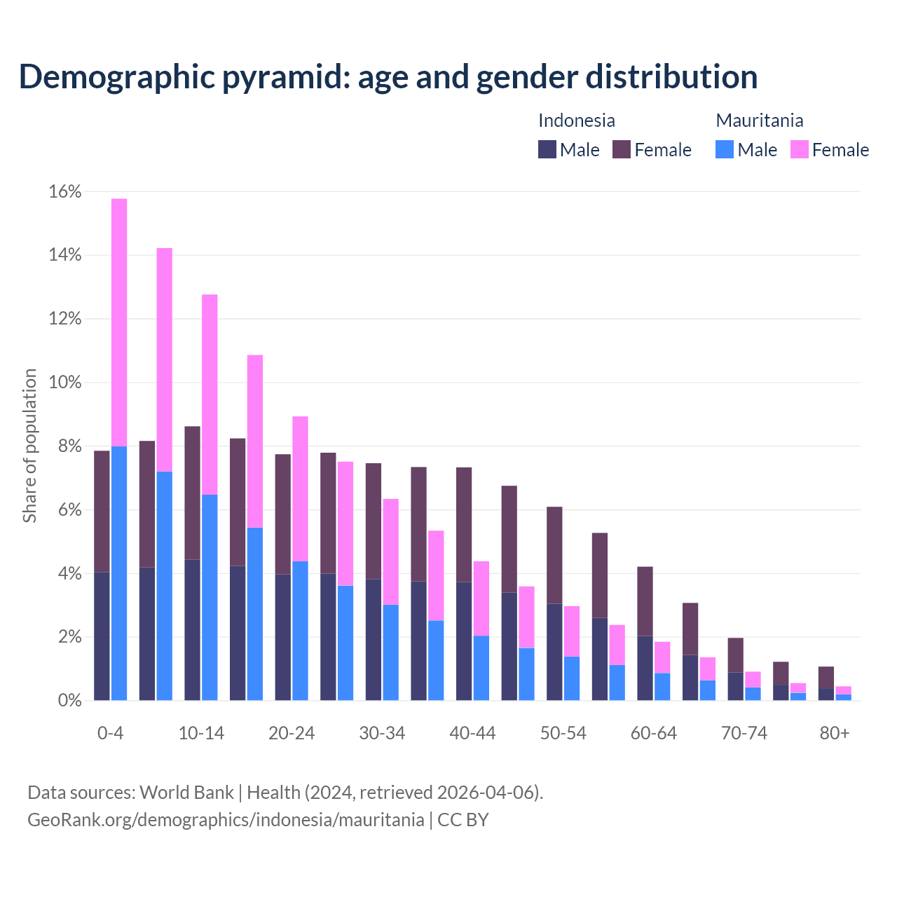 Demographics of Indonesia compared to Mauritania: