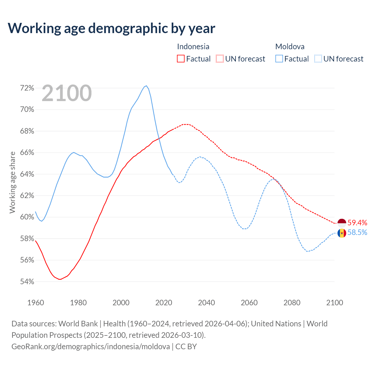 - Indonesia has 197M working age adults (aged 15-64) vs 1.5M in Moldova.
