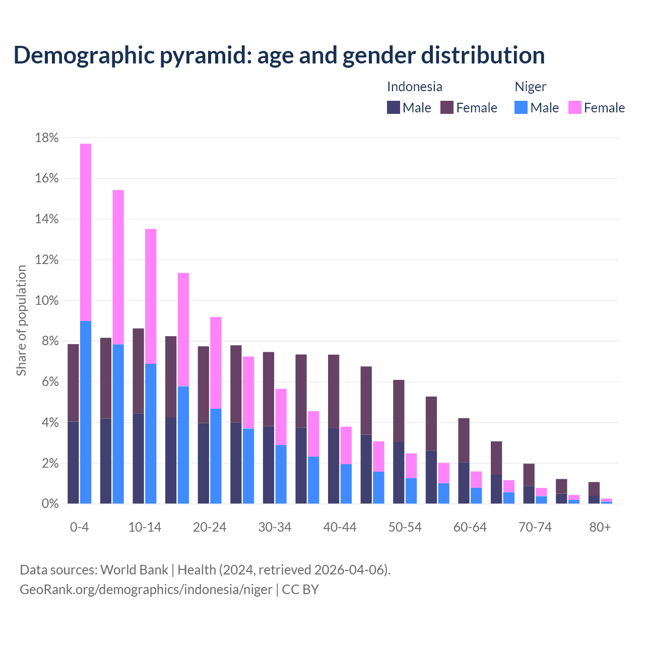 Demographics of Indonesia compared to Niger:
