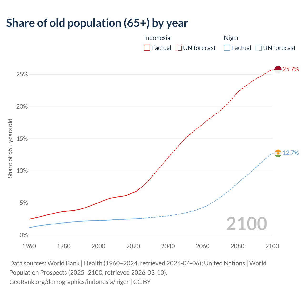 - The share of old-age demographic (65+) in Indonesia is 7.29% vs 2.59% in Niger.