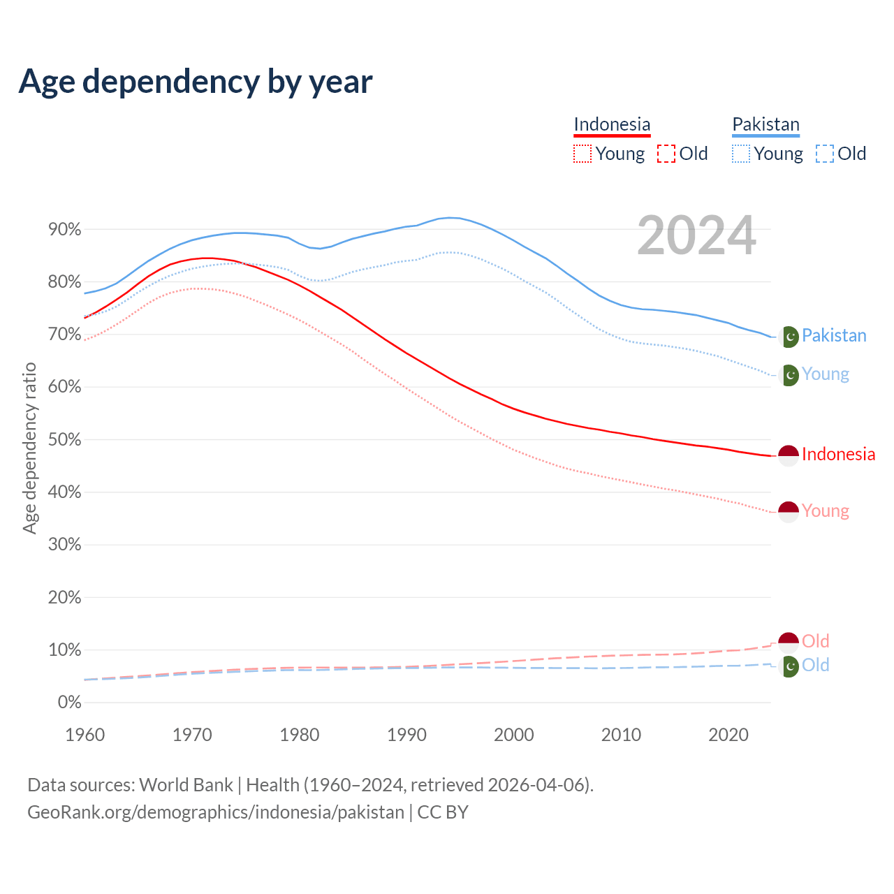 Data sources: World Bank | Health (1960–2024, retrieved 2026-04-06); U.S. Census Bureau (1960–2024, retrieved 2026-02-08).