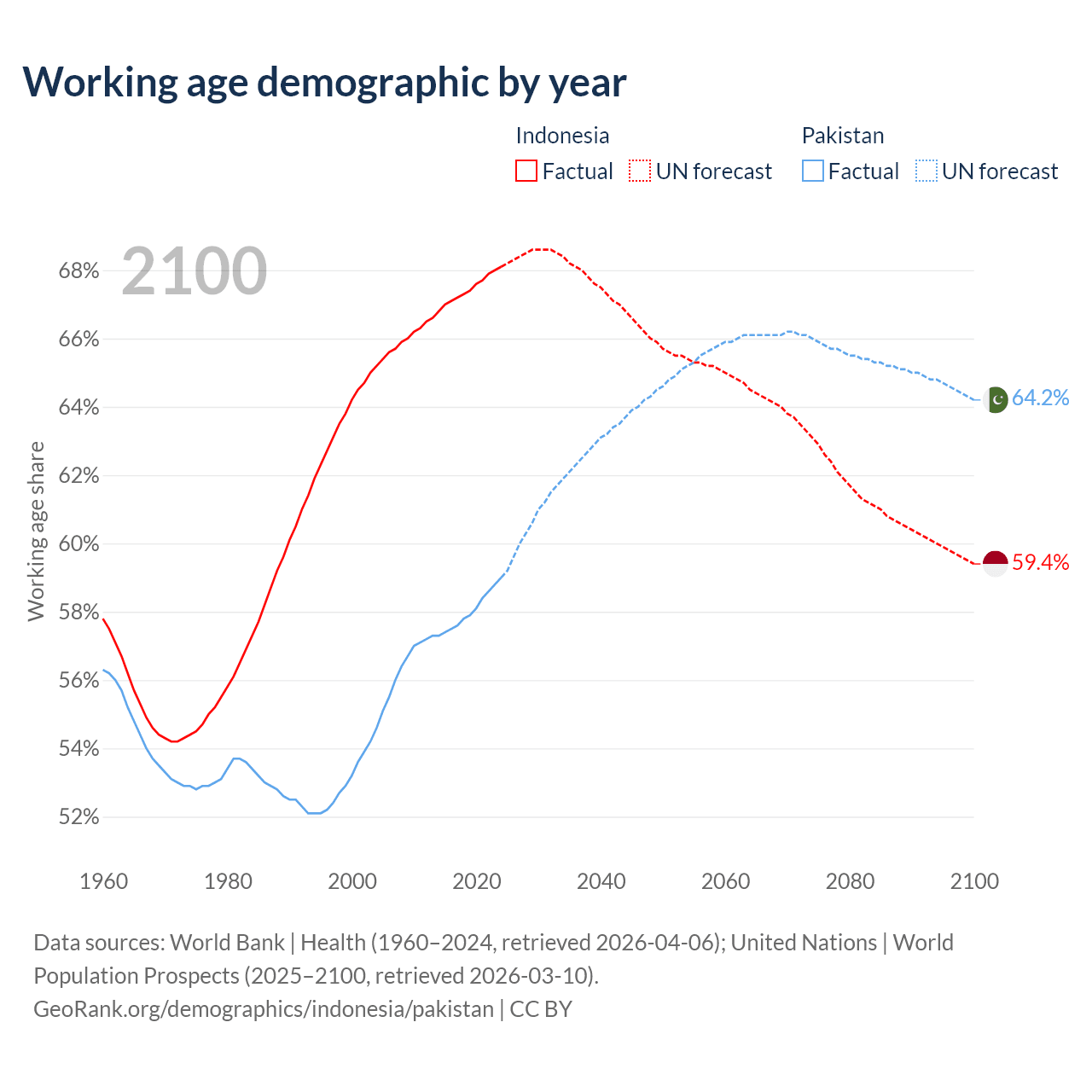 - Indonesia has 197M working age adults (aged 15-64) vs 154M in Pakistan.