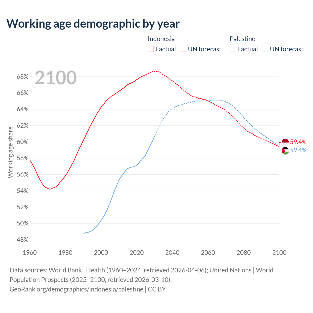 - Indonesia has 197M working age adults (aged 15-64) vs 3.2M in Palestine.