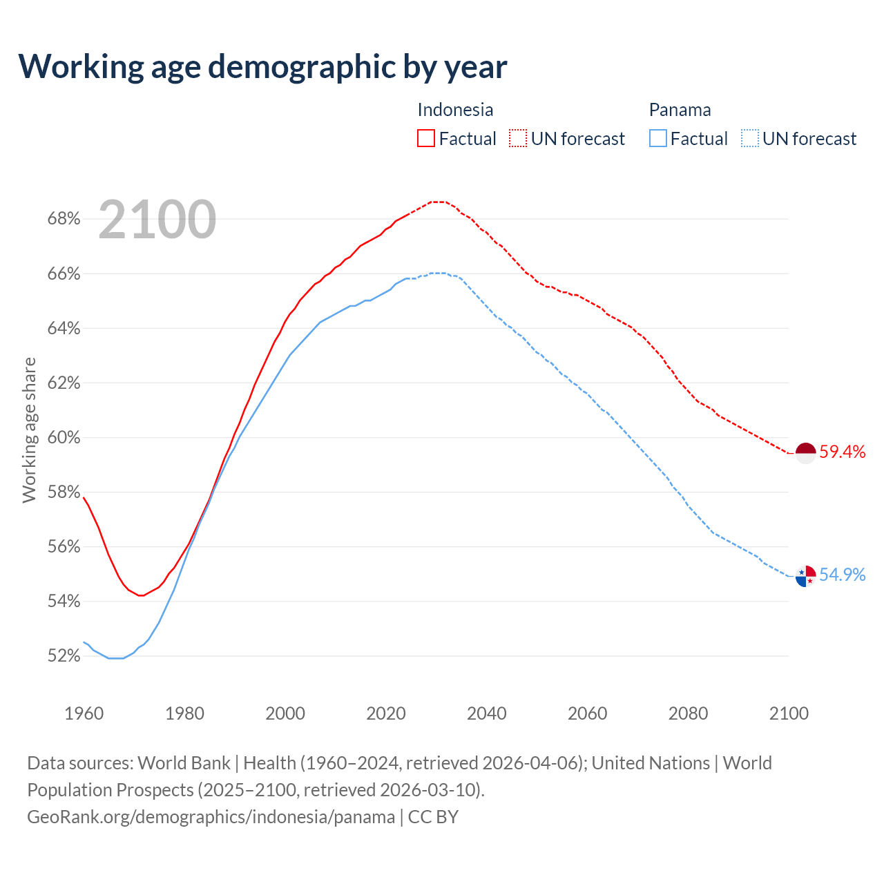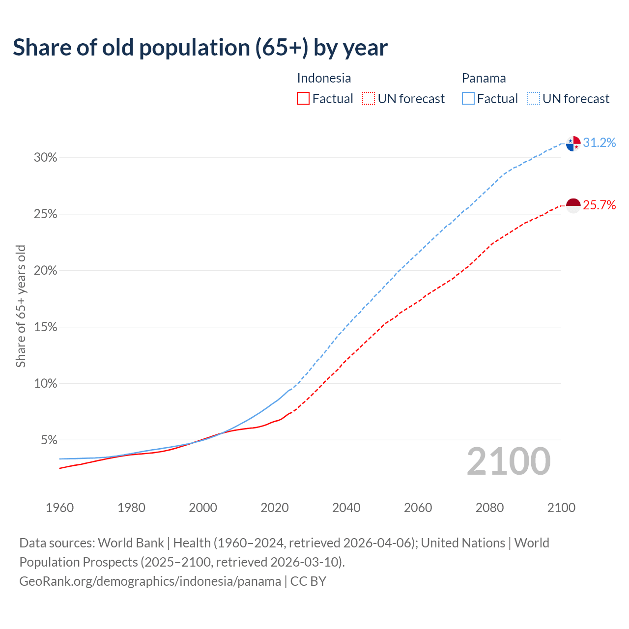Median age Indonesia vs Panama, 1960-2100