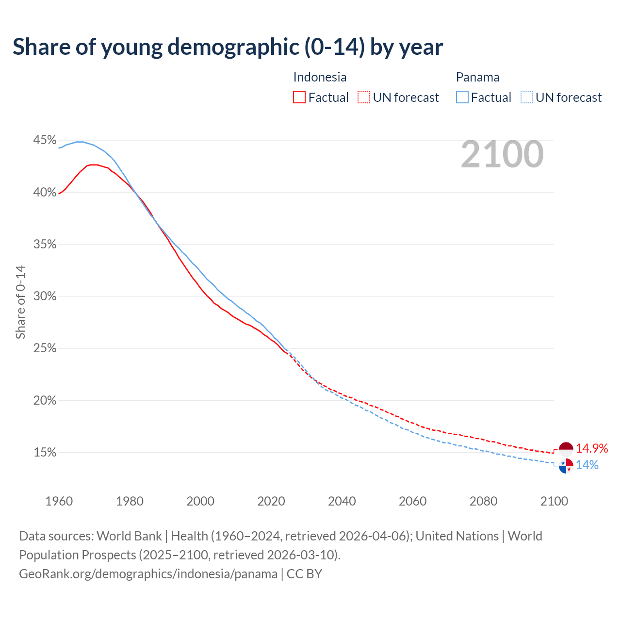 - The share of young demographic (0-15 years old) in Indonesia is 24.6% vs 24.9% in Panama.