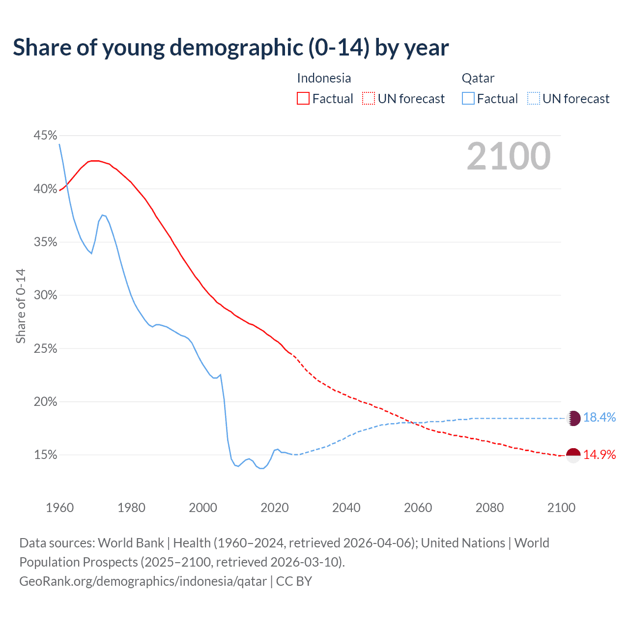 - The total fertility rate is 2.13 in Indonesia compared to 1.73 in Qatar.