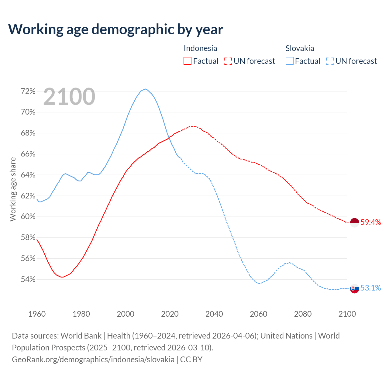 - Indonesia has 197M working age adults (aged 15-64) vs 3.52M in Slovakia.