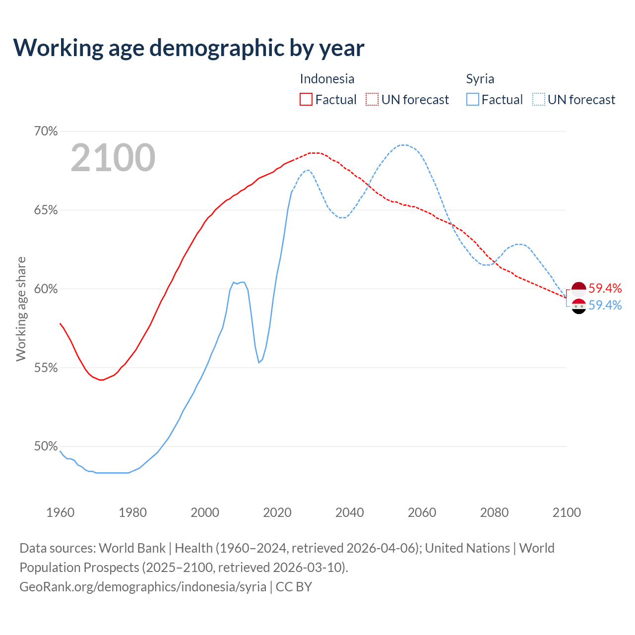 - Indonesia has 197M working age adults (aged 15-64) vs 17.7M in Syria.