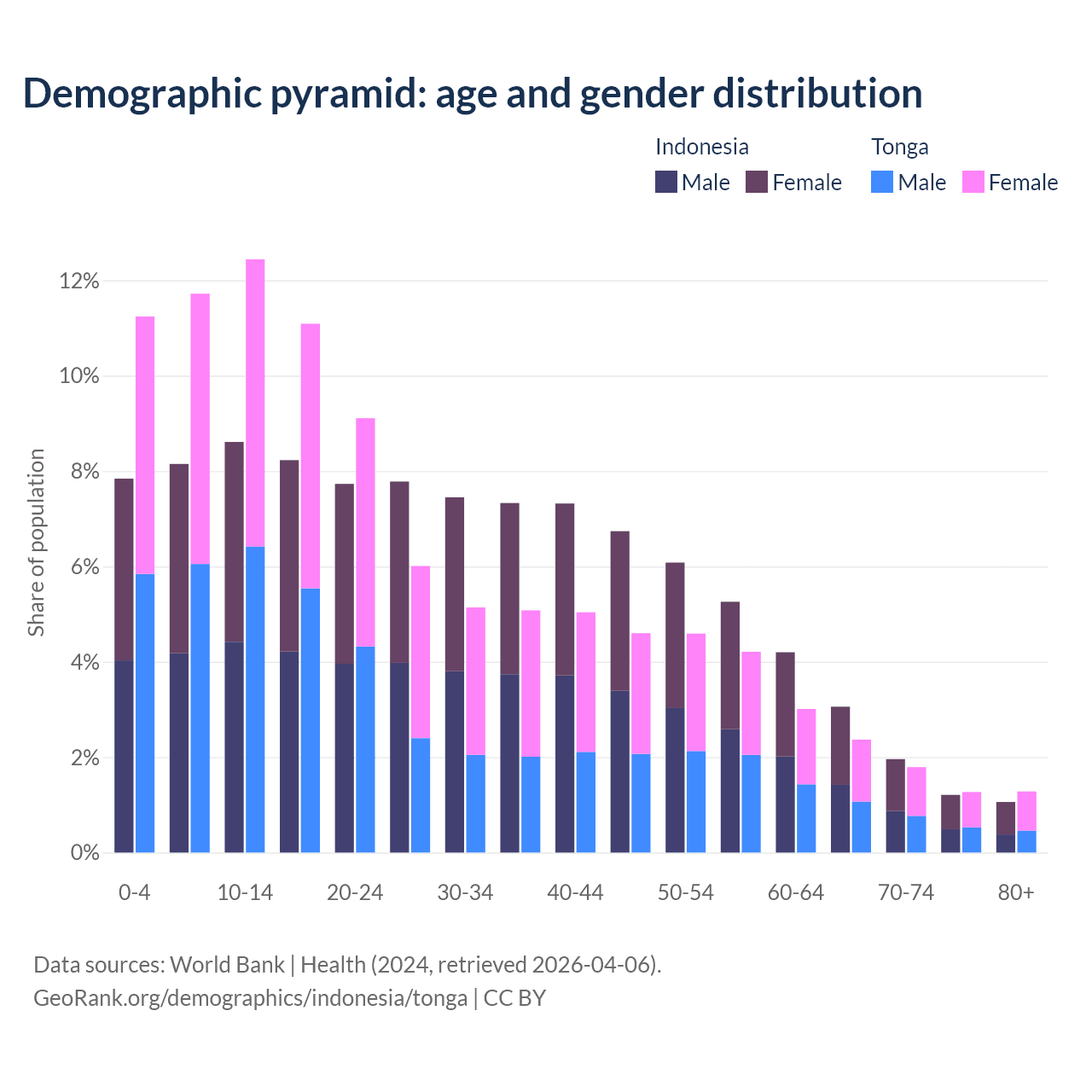 Demographics of Indonesia compared to Tonga: