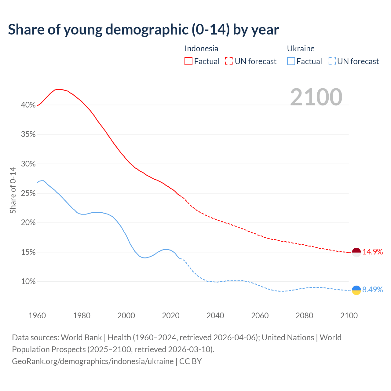 - The total fertility rate is 2.13 in Indonesia compared to 0.98 in Ukraine.
